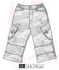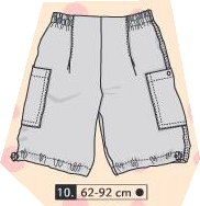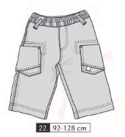 Pantacourt poches multiples. Braguette, bouton à la ceinture et ceinture en partie élastiquée.