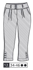 Pantacourt large. Pinces devant et dos. Fermeture invisible sur le côté et agrafe. Ceinture supplémentaire avec boutons