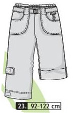 Pantalon qui peut se raccourcir en pantacourt grâce à des velcros. Taille élastiquée et ceinture avec demi-anneaux.