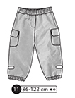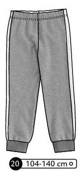 Pantalon de jogging avec poches sur les côtés dans la couture, empiècement genoux. Taille élastiquée et lien pour serrer, fausse braguette. Poches au dos