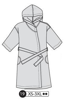 Peignoir avec capuche à manches 3/4, poches aux hanches, emmanchures descendues et ceinture à la taille