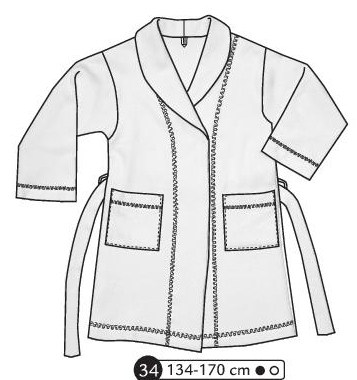 Peignoir, robe de chambre avec large col chale, poches plaquées devant et ceinture