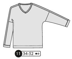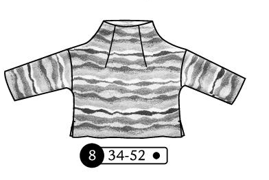Pull manches 3/4 avec emmanchures descendue, col montant avec pinces devant. Fentes en bas des côtés
