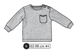 Sweat simple avec manches raglans et encolure ronde. Pinces au col des manches. Bord côte aux poignets et à la ceinture