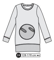 Robe pull manches longues raglans avec poignets. Appliqués ou poches kangourou plaquée devant selon l’option choisie