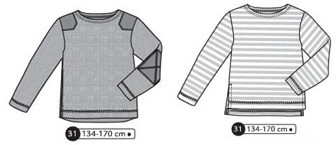 Sweat avec ou sans découpe devant et avec ou sans bord côte fendu en bas. Poignets et col en bord côte