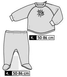 Pyjama 2 pièces en sweat ou polaire extensible. Pantalon avec pieds et haut manches raglan, fermeture éclaire sur l’épaule.