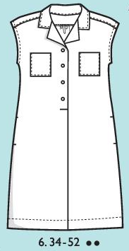 Robe chemise manches courtes sans emmanchure. Empiècement dos avec fronces. Poches plaquées devant et patte de boutonnage sur le devant haut pour l’enfilage. Poches aux hanches dans la couture.