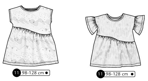 Robe ou tunique sans manche ou avec manchons froncés. Empiècement devant et dos asymétrique et froncé