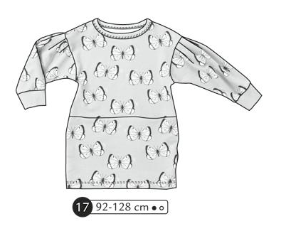 Robe en sweat avec emmanchure descendue, manches froncées. Poches devant dans la couture de la jupe