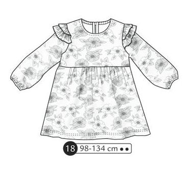 Robe à manches longues élastiquées aux poignets. Volants froncés aux emmanchures, jupe froncée. Fermeture invisible au dos