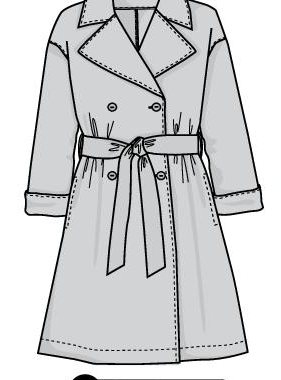 Trench en coton d’extérieur, large revers encolure et manches, poches aux hanches dans les coutures de côté, boutonnage croisé devant et ceinture à nouer