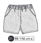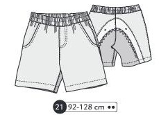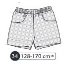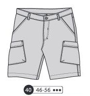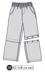 Pantalon taille élastiquée, poches plaquées au dos, poches aux hanches. Fausse braguette, pressions pour changer en short