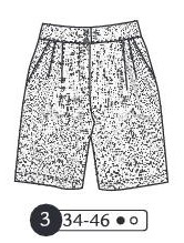 Short/bermuda à plis devant, poches aux hanches, braguette et boutons à la ceinture. Taille élastiquée au dos