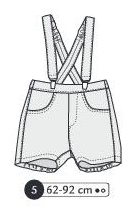 Short à bretelles élastiquées croisée dans le dos et munies d’un clip devant. Taille élastiquée au dos, poches plaquées, poches aux hanches. Fausse braguette