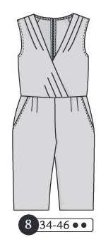Combinaison short sans manche avec haut plissé et croisé. Pinces encolure dos. Pli devant du short, poches aux hanches, pinces au dos. Fermeture invisible au dos