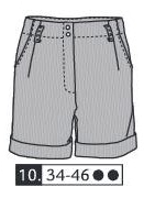 Short, pantacourt ou pantalon avec poches zippées devant, braguette et bouton à la ceinture, pinces au dos