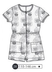 Combinaison short avec taille élastiquée, manches courtes et poches plaquées. Fermeture invisible devant