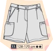 Short long ou bermuda avec braguette et attache longue à bouton. Pinces et poches