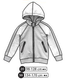 Sweat à capuche avec manches raglans, découpes de manches, poches zippées devant. Devant capuche élastiqué, poignets et ceinture en bord côte. Fermeture éclaire devant