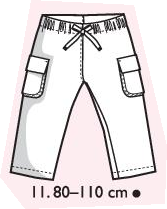 Pantalon en coton avec poches aux hanches, fausse braguette, poches plaquées au dos et sur la cuisse, taille élastiquée