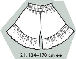Short large avec volant en bas des jambes. Poches aux hanches et taille élastiquée