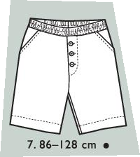 Bermuda taille élastiquée, poches aux hanches et fausse braguette à boutons. Poches plaquées et patte au dos.