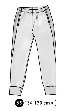 Pantalon de jogging avec poches dans l’empiècement sur les côtés, fausse braguette. Taille élastiquée et bord côte aux chevilles