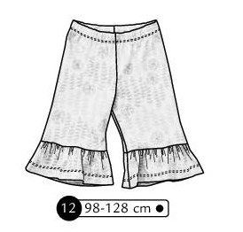 Pantacourt à volant froncés en bas de jambes. Taille élastiquée