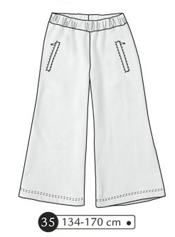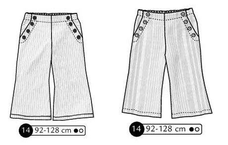 Pantalon à pont en 2 longueurs. Taille élastiquée et boutons sur le côté pour agrémenter.