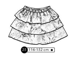 Jupe courte avec 2 niveaux de tissus froncés. Taille élastiquée