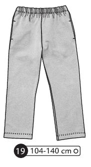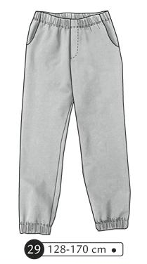 Pantalon de jogging sans couture de fourche devant. Poches aux hanches, bracelets de cheville en bord côte. Taille élastiquée