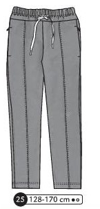 Pantalon taille élastiquée, poches zippées au hanches. Pli le long des jambes devant et dos