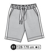 Bermuda taille élastiquée, poches plaquées sur les côtés, fausse braguette et empiècement dos