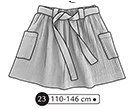 Jupe courte avec poches plaquées sur les côtés, taille élastiquée et ceinture à nouer