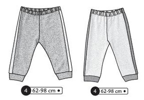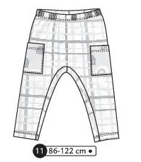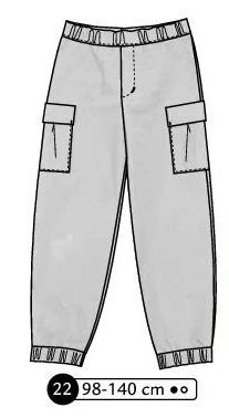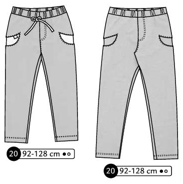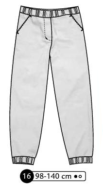 Pantalon de toile simple avec taille et bas des jambes élastiqués, fausse braguette, poches à la taille et poches plaquées au dos