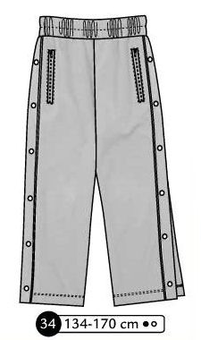 Pantalon de jogging avec pressions sur les côtés extérieurs des jambes. Taille élastiquées, poches zippées aux hanches et poches plaquées au dos