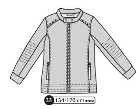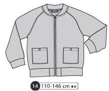 Blouson doublé, bomber manches longues légèrement raglans. Poignets, col et ceinture en bord côte. Poches dans les coutures des découpes devant. Fermeture éclaire devant
