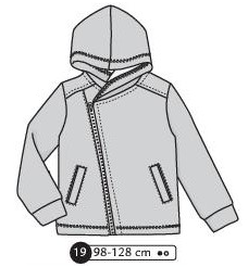 Sweat à capuche, manches longues raglans. Ceinture et poignets en bord côte. Poches à rabats plaquées devant, fermeture devant