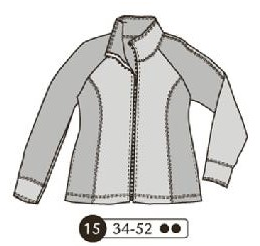 Blouson avec col, poignets et ceinture en bord côte. Poches invisibles dans les découpe du devant. Découpes dos. Fermeture devant