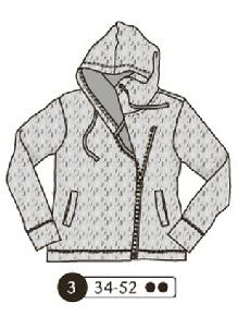 Sweat avec capuche et poches. Découpes devant et dos et bracelets aux poignets. Fermeture devant